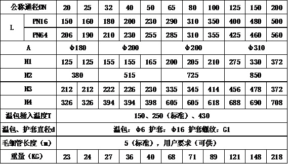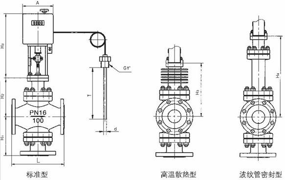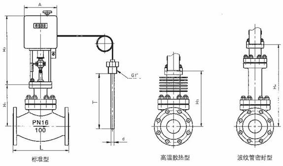 | 温包、护套直径d | 温包:φ6 护套:φ16 护套螺丝:G1 |