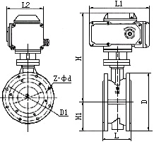 | 公称径通DN | L | H | H1 | D | D1 | Z-φd | L1 | L2 | 重量(Kg) |