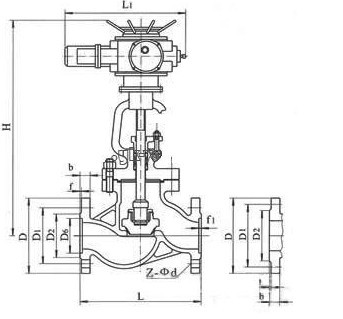 电动法兰截止阀主要外形尺寸、连接尺寸及质量