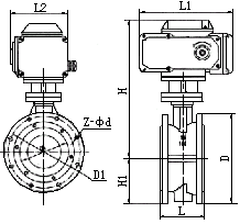 公称通径DN | L | H | H1 | D1 | Z-φd | D | L1 | L2 |