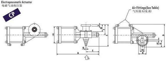 CP型活塞式电磁气动驱动器适合于控制VFS型蝶阀,VSS型球阀以及DVA型双向分流阀的开启和关闭性能-特型