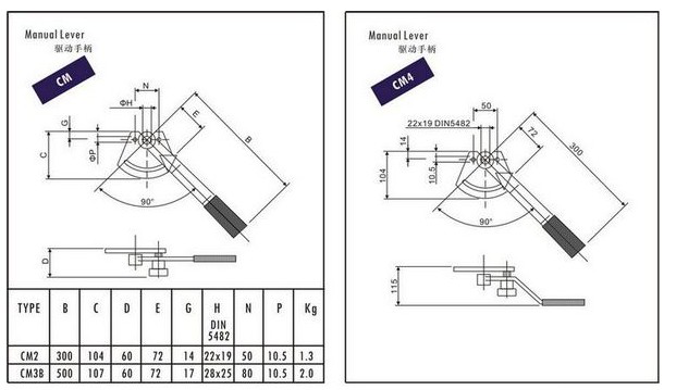 CM型驱动手柄上的花键轴和轴套连接符合DIN 5482标准。