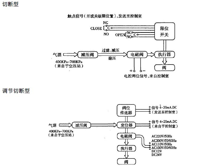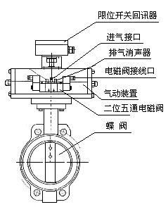 气动调节蝶阀由气动活塞式执行机构与蝶阀组合构成。(如图GT系列气动执行机构相同规格有双作用式、单作用式(弹簧复位);)