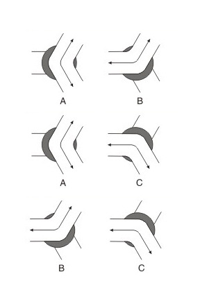 120度Y型三通球阀流向图,三种组合,请选择一种流向组合