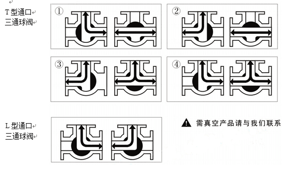 三通球阀标准阀芯有L型三通双口孔道和T型三口孔道两种,改变球芯与管道的相对角度,可以对三支管道流体实现不同的组合控制:T型孔道可起分流合流作用,L型孔道起配比作用,适用于液体、气体、蒸汽等介质的配比调节与控制。