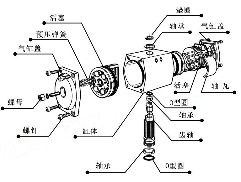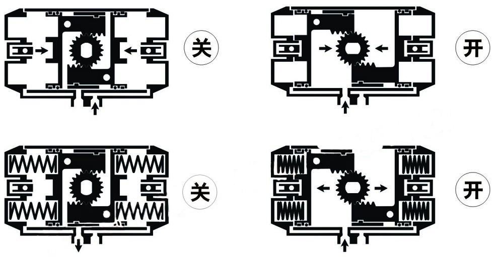 气动齿轮齿条活塞式执行机构为双活塞驱动、齿轮齿条传动的气动执行机构,具有体积小、输出力矩大、