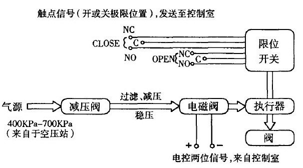 该产品以压缩空气为动力源,接受控制系统的开关信号,通过电磁阀换向,操作球阀按规定要求对管路进行切换。