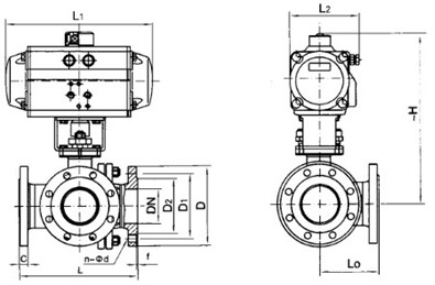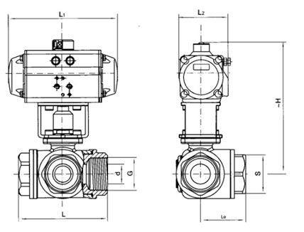气动三通O型球阀由气动活塞执行机构和三通球阀组成。气动三通球阀改变球芯与管道的相对位置,可以对三条管路流体实行不同的组合控制。